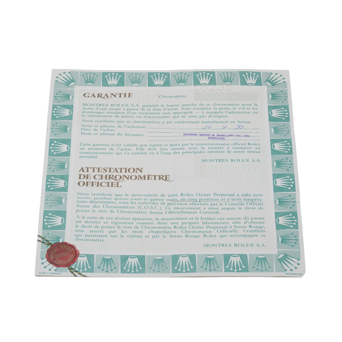 - メーカー保証書( 1990年4月海外購入) / タグ
