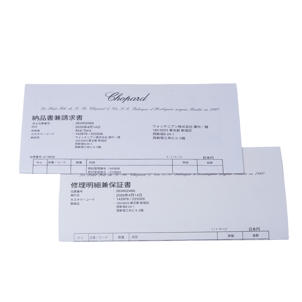 - 修理明細書(2026年4月ストラップ交換/ガラス交換)