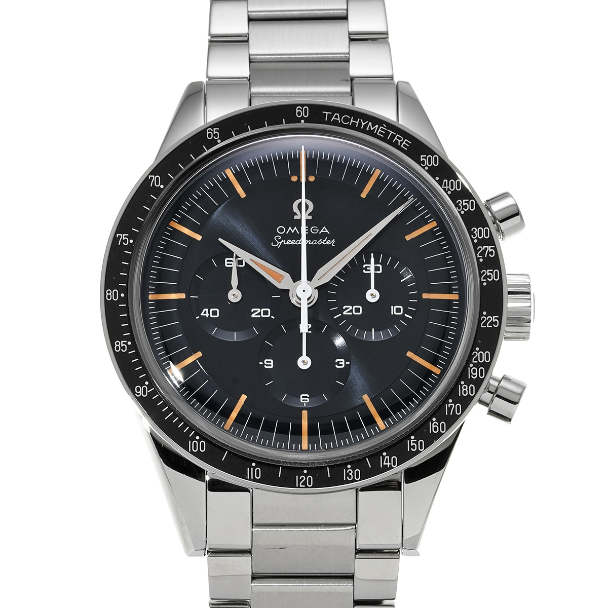コメント1962年10月3日、マーキュリー計画のシグマ7ミッションにて、宇宙飛行士、ウォルター・シラーは私物のスピードマスターを装着して臨みました。 それから50年後の2012年に、オメガはそんなウォルター・シラーが愛用した1962年当時のスピードマスター Ref.CK2998を復刻し、「ファースト オメガ イン スペース」として発売しましたが、ここにご紹介するのはそれから更に12年後の2024年に登場した第二弾です。 当時のメッキ仕上げの文字盤を思わせるグレーブルーのステップ付き文字盤やラジウム夜光の経年変化を再現したスーパールミノバ、キャタピラブレスを再現したブレスレットなど、ビンテージファンをも納得させる外装に、マスタークロノメーターを取得した最新・最良のCal.3861を搭載、大幅なグレードアップが図られています。