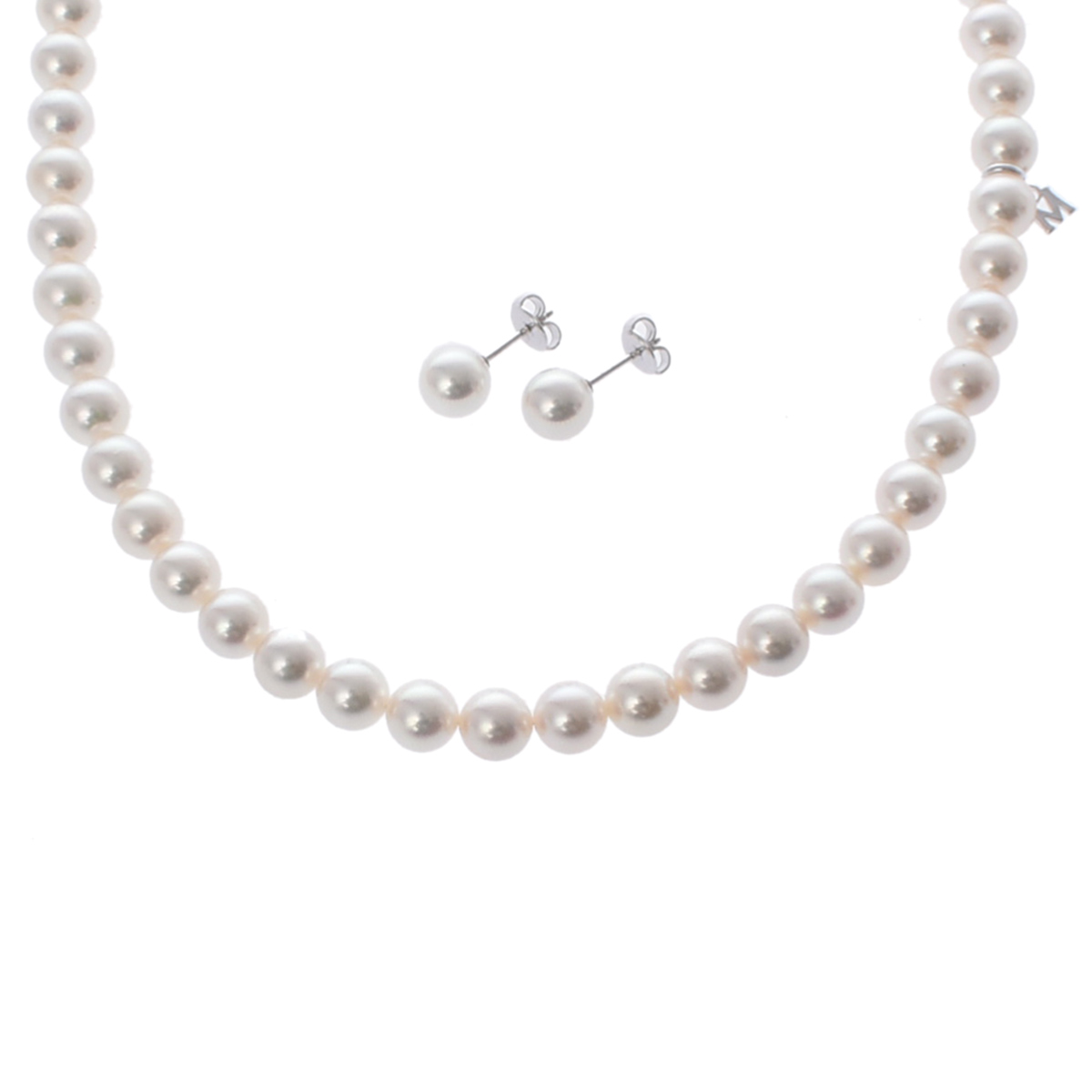 ミキモト パールネックレス ピアス 2点セット Mチャーム付き シルバー K18ホワイトゴールド WG/シルバー925 レディース ジュエリー 【中古】【jewelry】