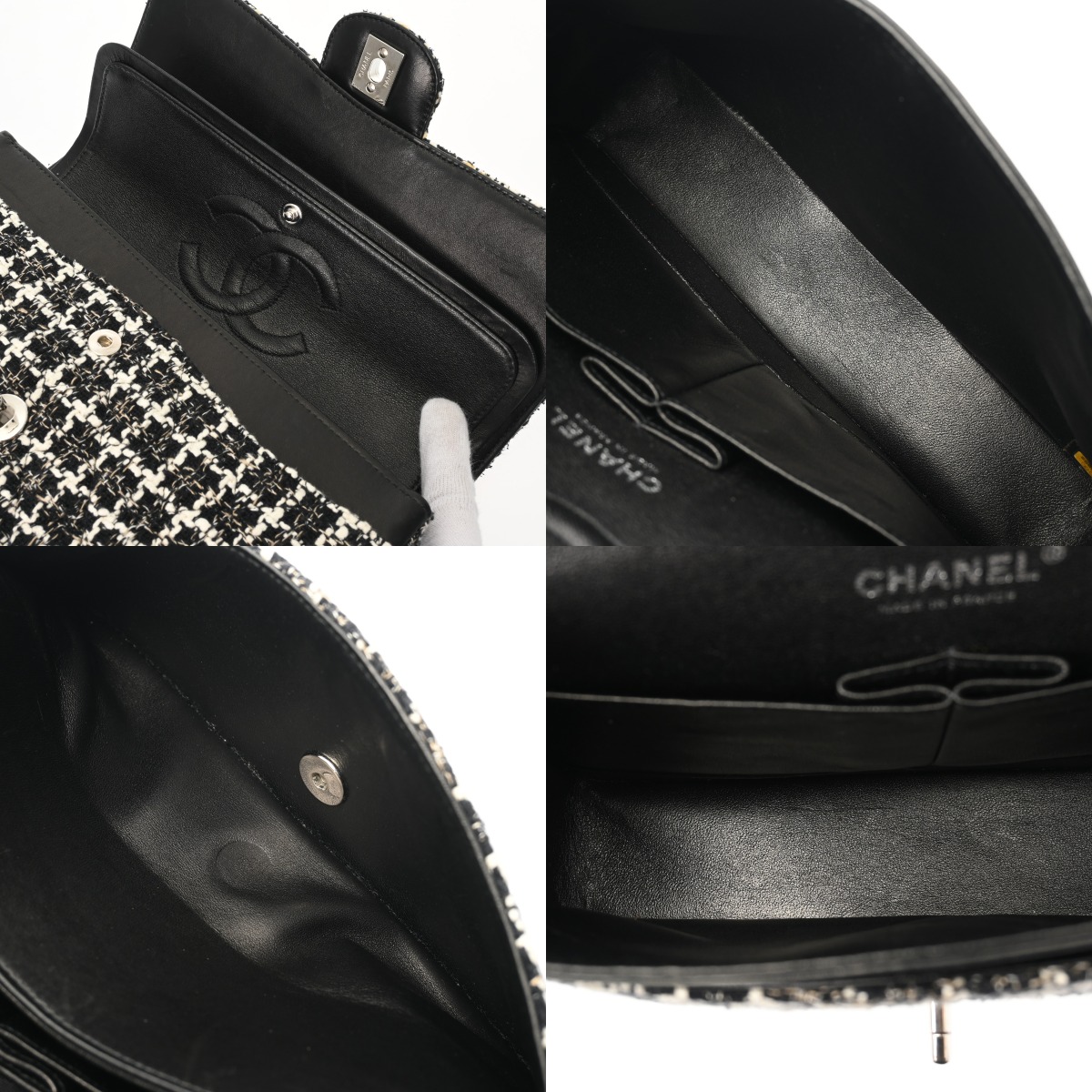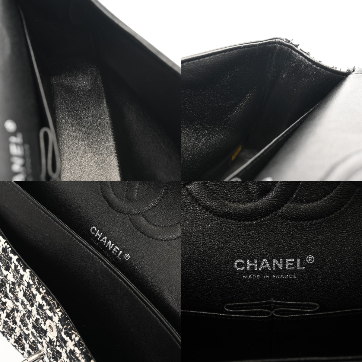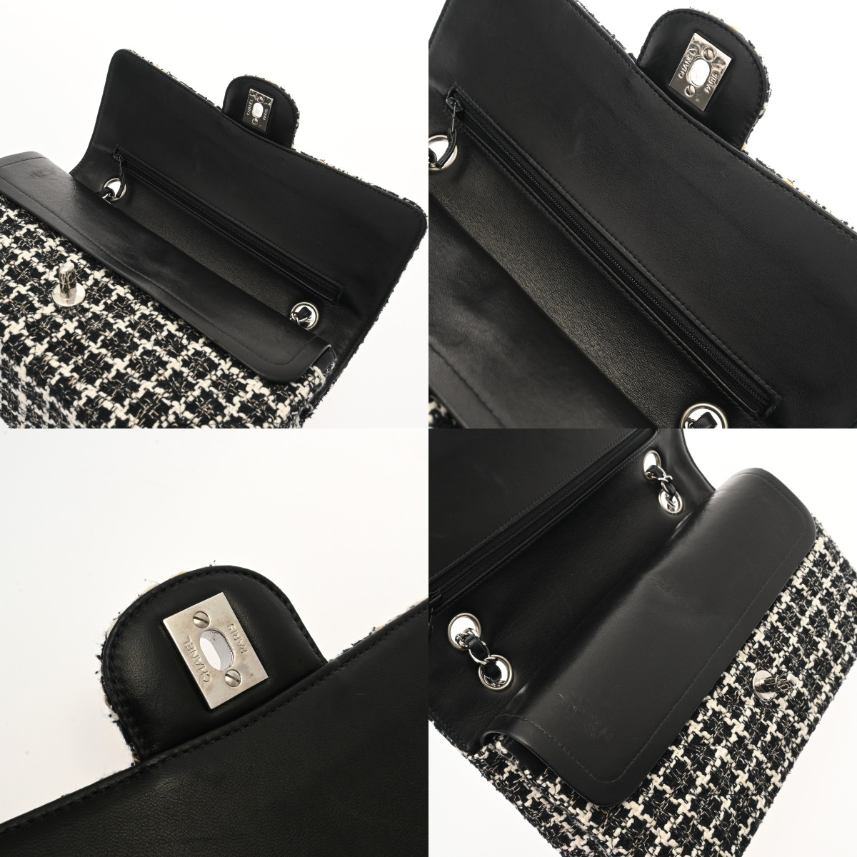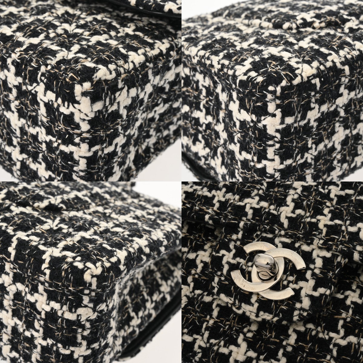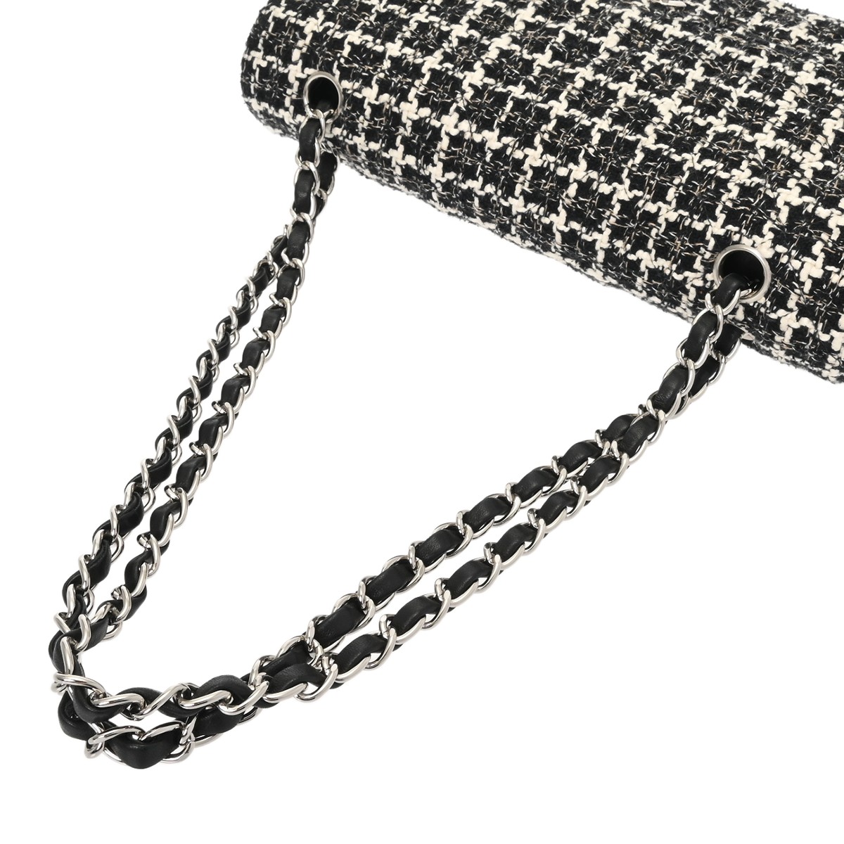 シャネル マトラッセ Wフラップ Wチェーンショルダー 25 ブラック A01112 ツイード レディース バッグ 【中古】【bag】