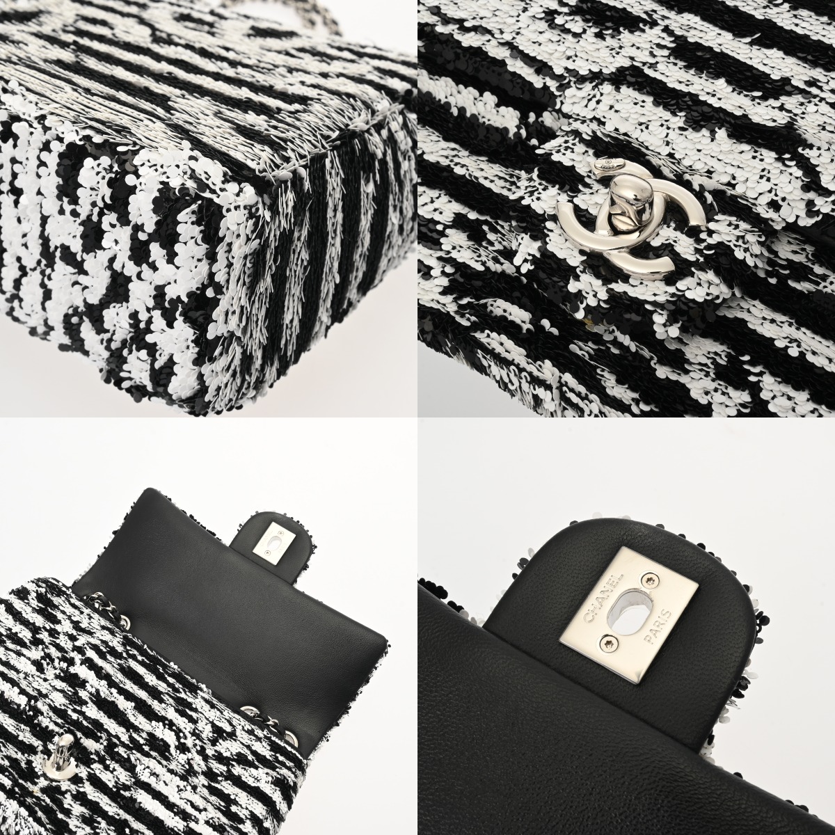 シャネル マトラッセ スモールフラップバッグ ブラック/ホワイト AS4561 スパンコール レディース バッグ 【中古】【bag】