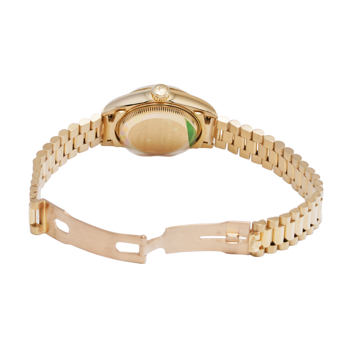 それから四半世紀の歳月を経て進化したこの世代のレディ デイトジャストの中でも、このゴールドモデルはもちろん特別な存在であり、最高峰の証であるプレジデントブレスレットがフィットされているほか、様々なジュエリーピースのベースモデルとして多く用いられています。 -