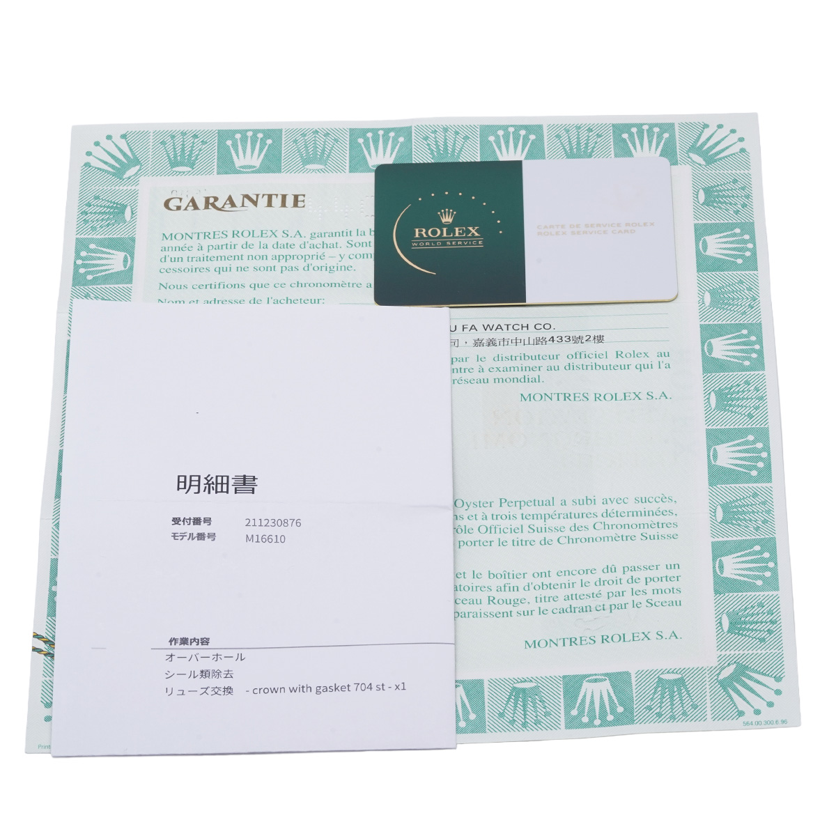 - メーカー保証書( 海外購入 購入日無記入) / メーカー箱/タグ / 明細書(2023年11月オーバーホール他)サービスカード