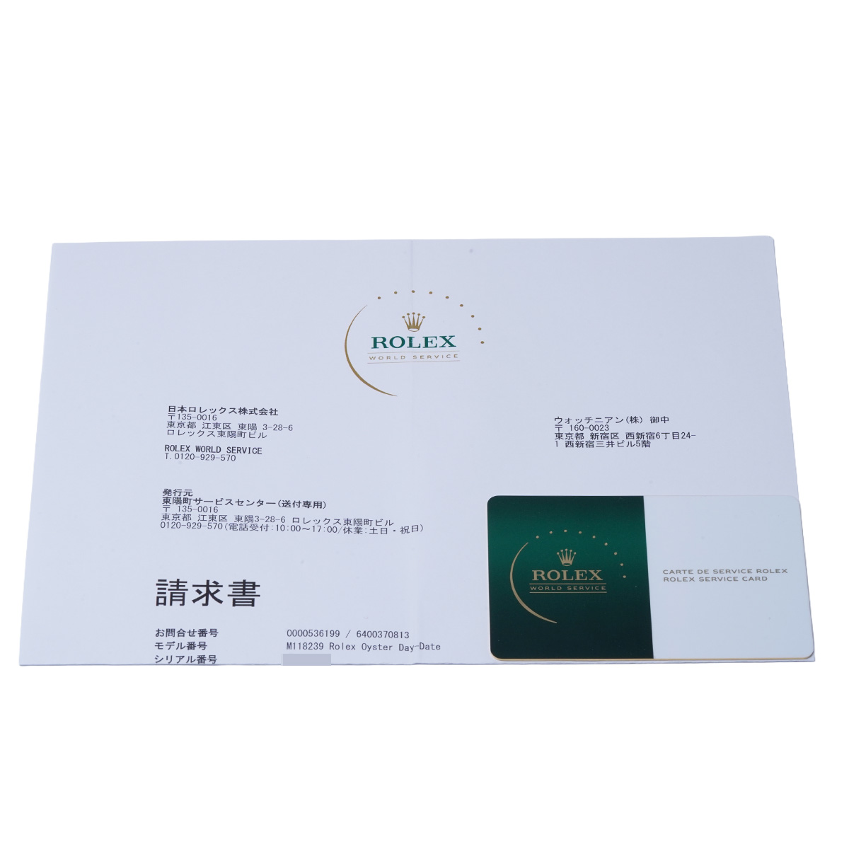 - サービスカード(有効期限2028年5月) 修理明細書(2026年4月クリスタル交換)