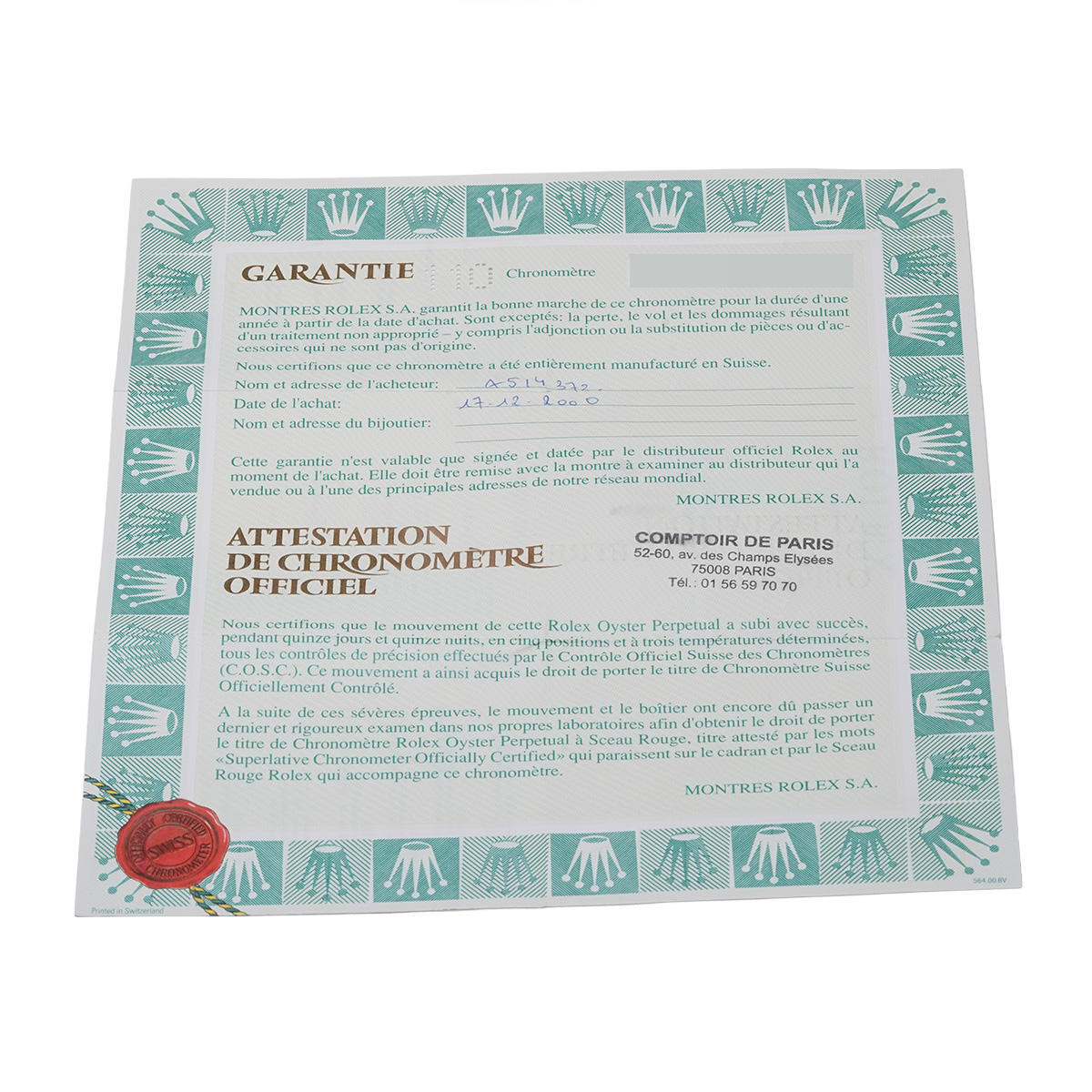 - メーカー保証書( 2000年12月海外購入)