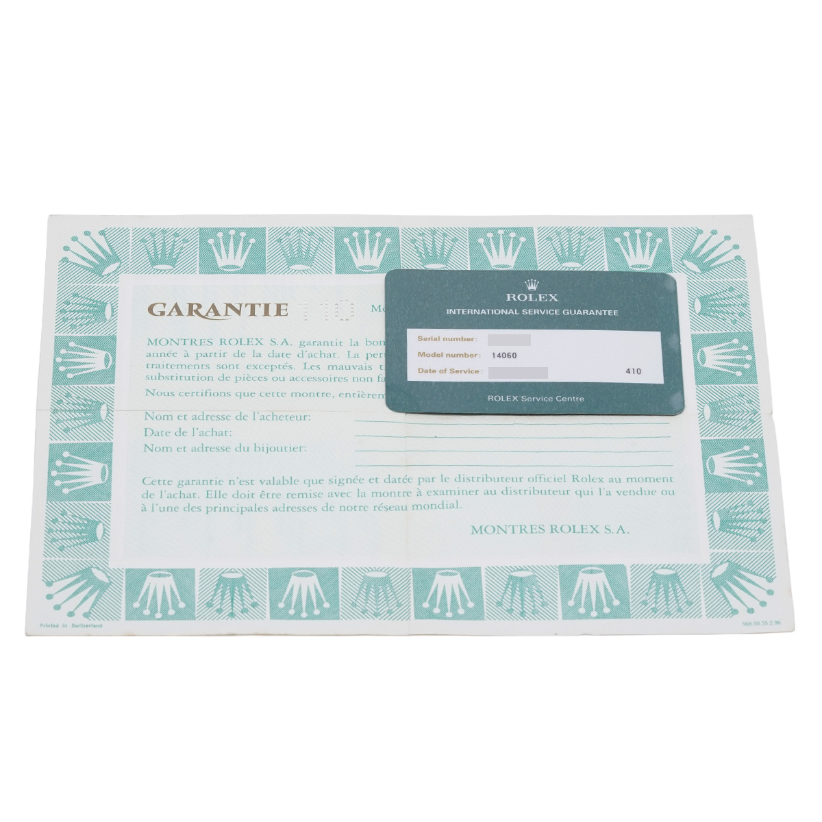 - メーカー保証書( 海外購入 購入日無記入) / メーカー箱/冊子 / 国際サービス保証書(2017年3月オーバーホール)