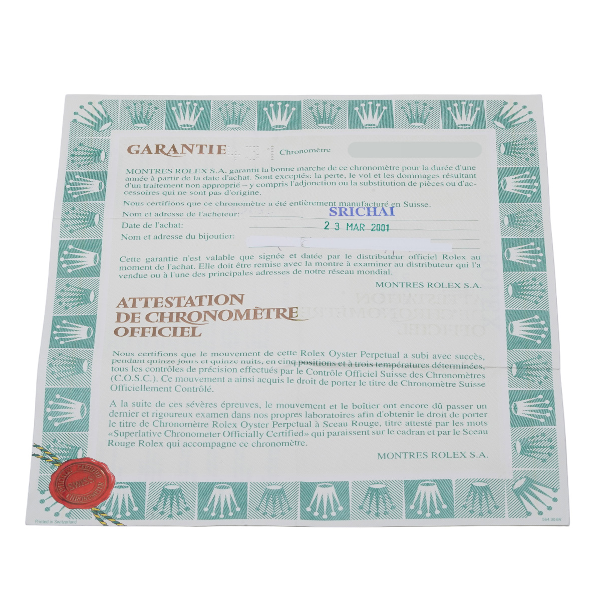 - メーカー保証書( 2001年3月海外購入) / メーカー箱(ダメージ)/タグ