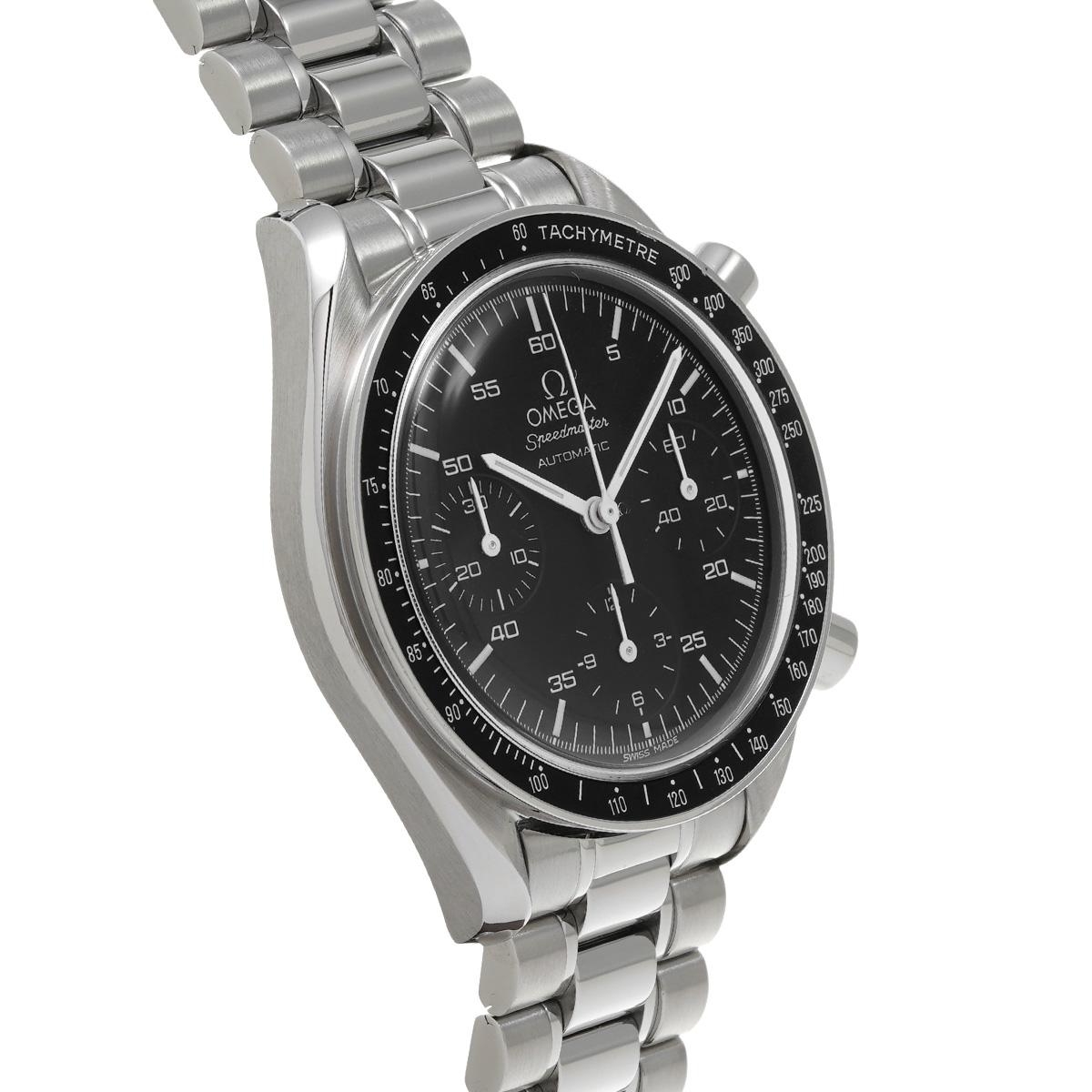 コメントこのスピードマスター リデュースドとも呼ばれるモデルは、オメガの代表的な時計であるスピードマスター プロフェッショナルのツールとして研ぎ澄まされた精悍さはそのままに、ケース径を39ミリに縮小して腕上での収まりを改善すると共に、自動巻きムーブメントの採用によって利便性を向上させることで、より多くの人々の日常に寄り添える時計を目指したものです。