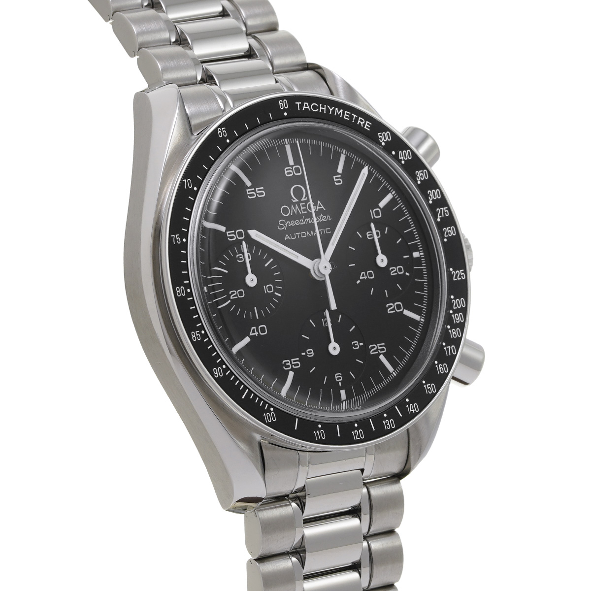 コメントこのスピードマスター リデュースドとも呼ばれるモデルは、オメガの代表的な時計であるスピードマスター プロフェッショナルのツールとして研ぎ澄まされた精悍さはそのままに、ケース径を39ミリに縮小して腕上での収まりを改善すると共に、自動巻きムーブメントの採用によって利便性を向上させることで、より多くの人々の日常に寄り添える時計を目指したものです。