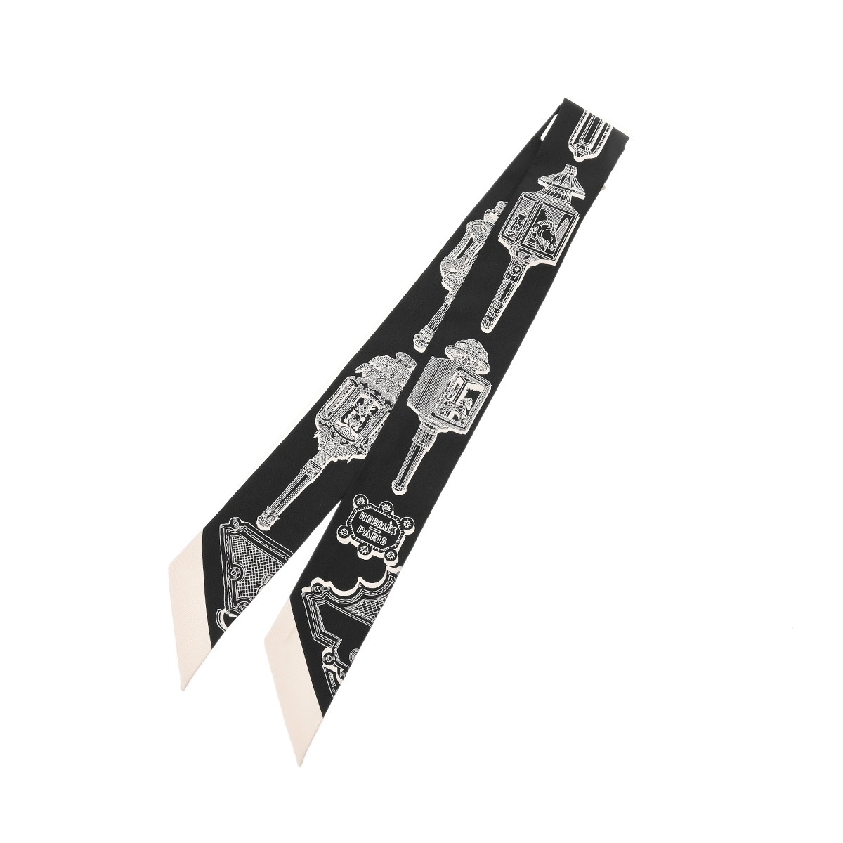 エルメス ツイリー MERVEILLEUSES LANTERNES ブラック/ホワイト シルク100% レディース 【新品】【other】