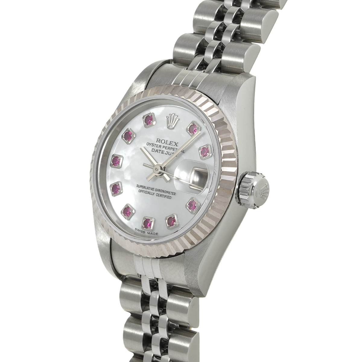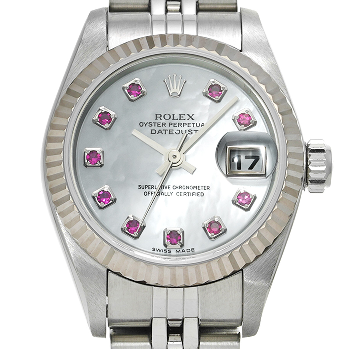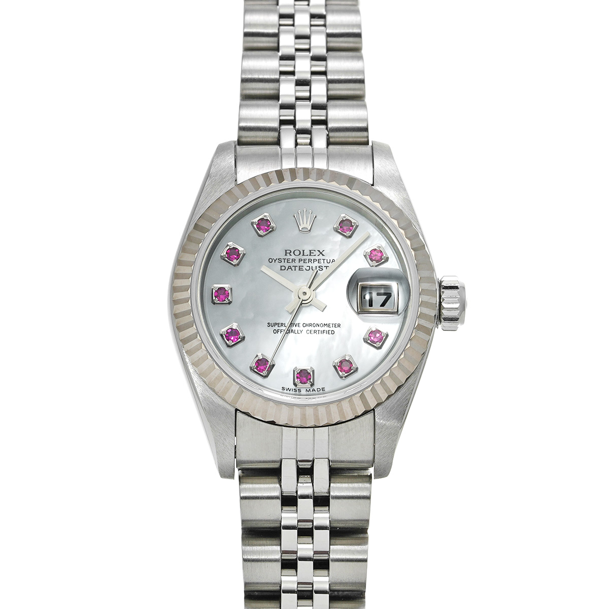 ロレックス デイトジャスト 26 79174NGR ホワイトシェル/ルビー レディース 時計 【中古】【wristwatch】