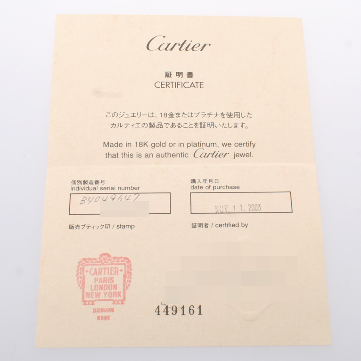 - メーカー保証書( 2003年11月国内購入) / メーカー箱