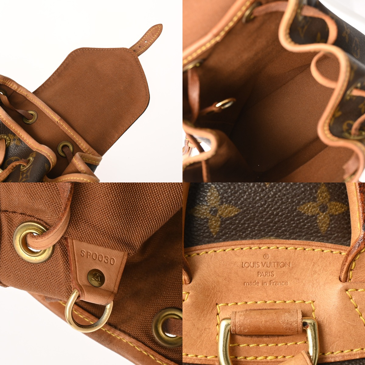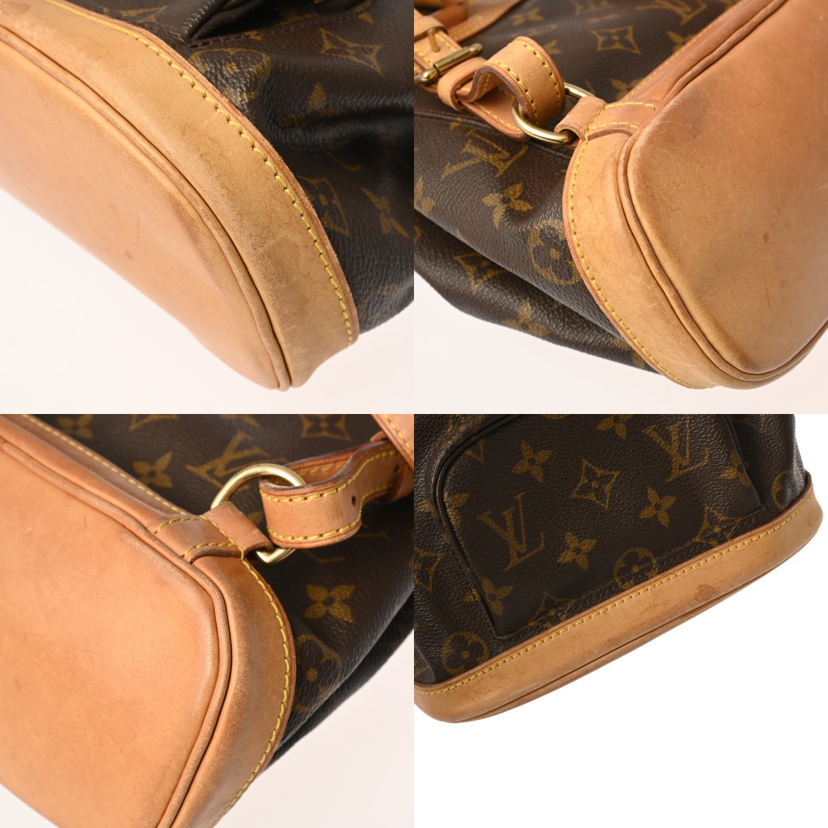- たたみクセ、つぶれ、薄汚れ、スレ、テカリ、ヌメ革にヤケやシミ、紐やショルダーにクセ、シワ、金具にサビ、変色など使用感がございます。