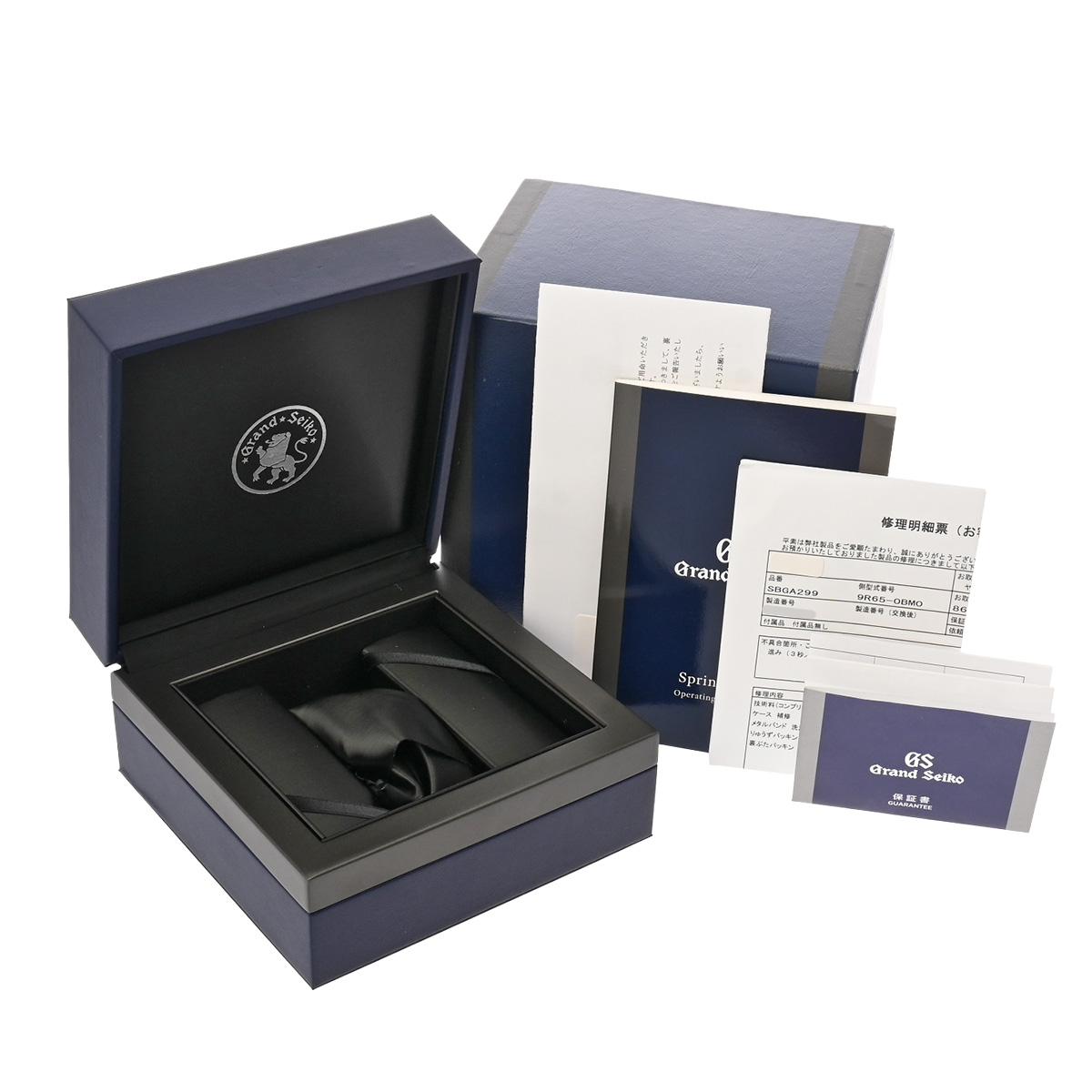 - メーカー保証書( 2020年6月国内購入) / メーカー箱(ダメージ)/冊子 / グランドセイコー修理完了ご報告書/修理明細票(2023年11月コンプリートサービス)