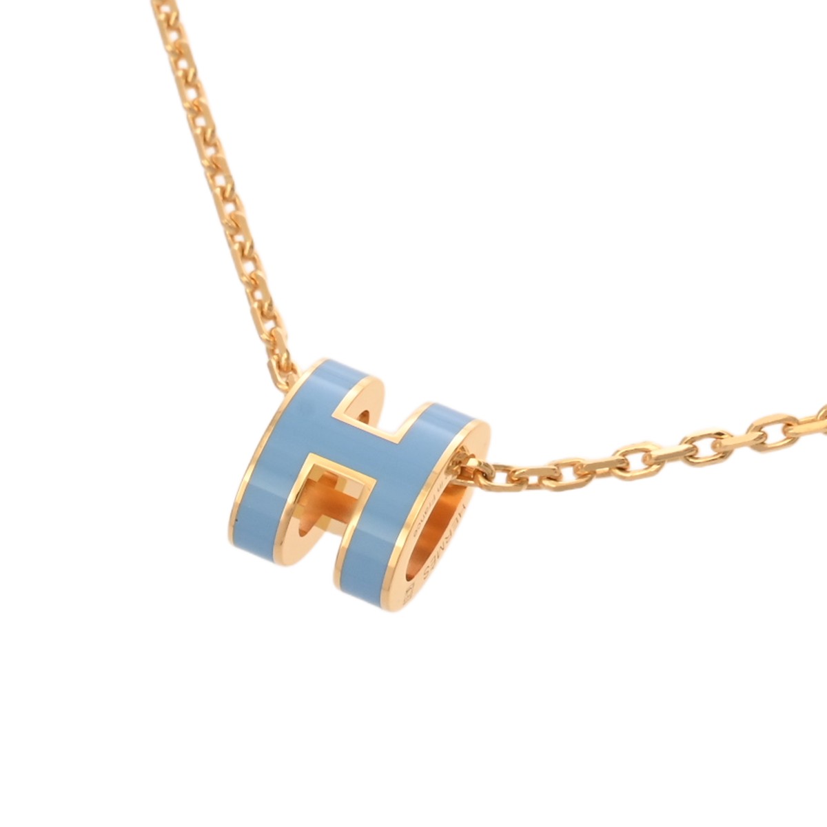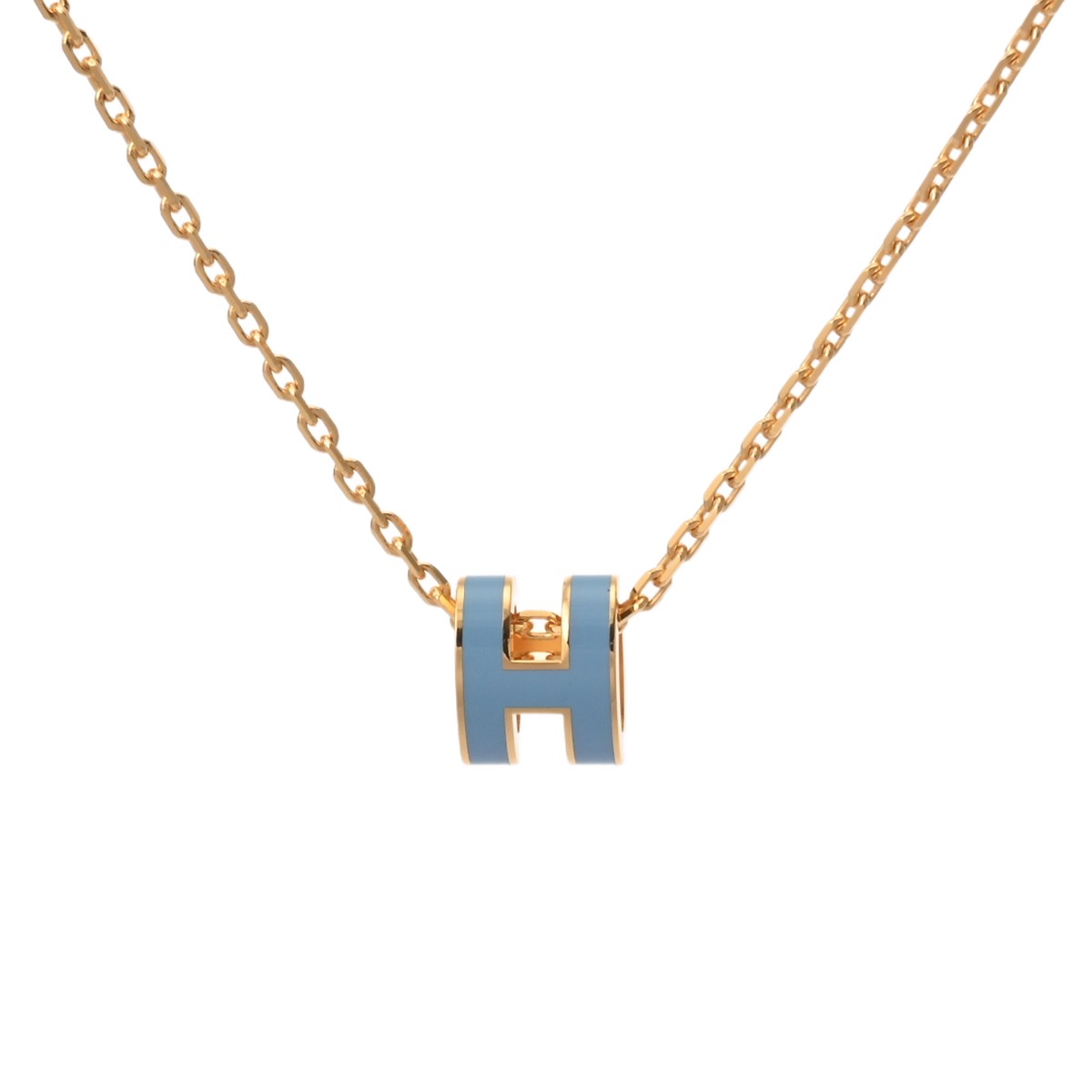 エルメス ポップH ミニネックレス ブルー/ゴールド金具 エナメル ユニセックス ジュエリー 【未使用】【jewelry】