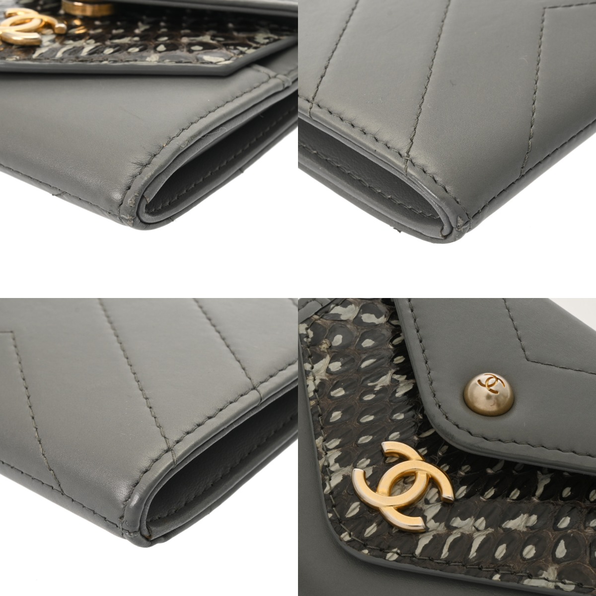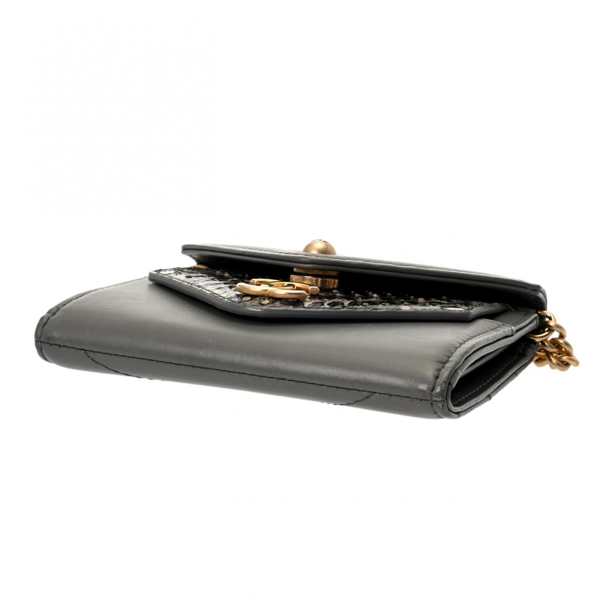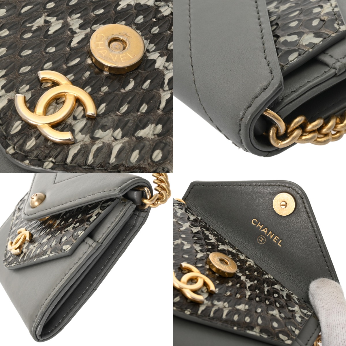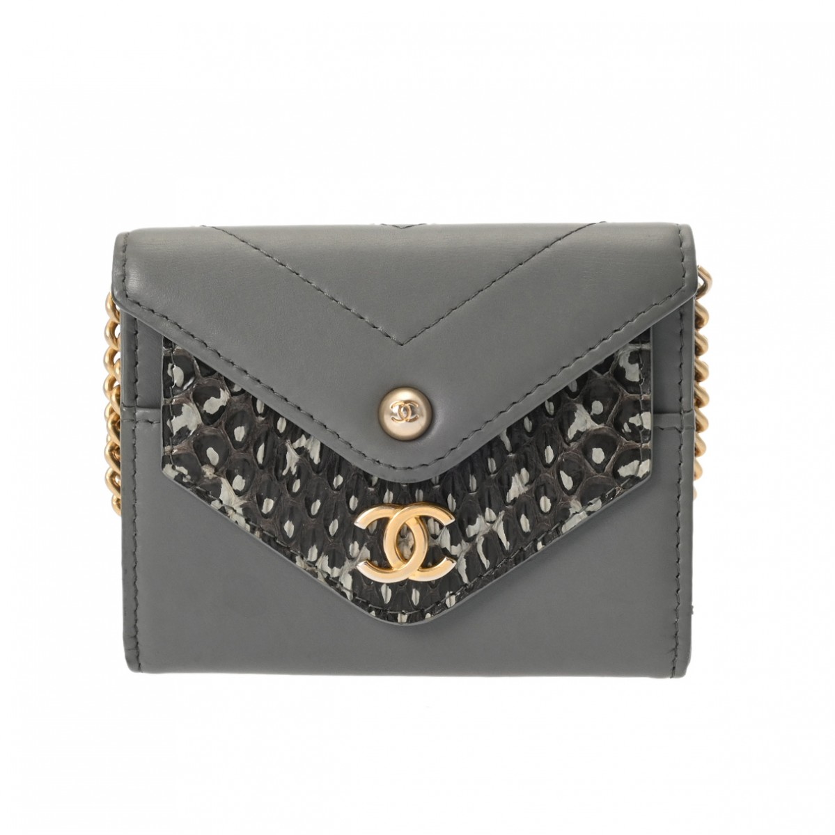 シャネル チェーンウォレット グレー A70313 パイソン/カーフ レディース バッグ 【中古】【bag】