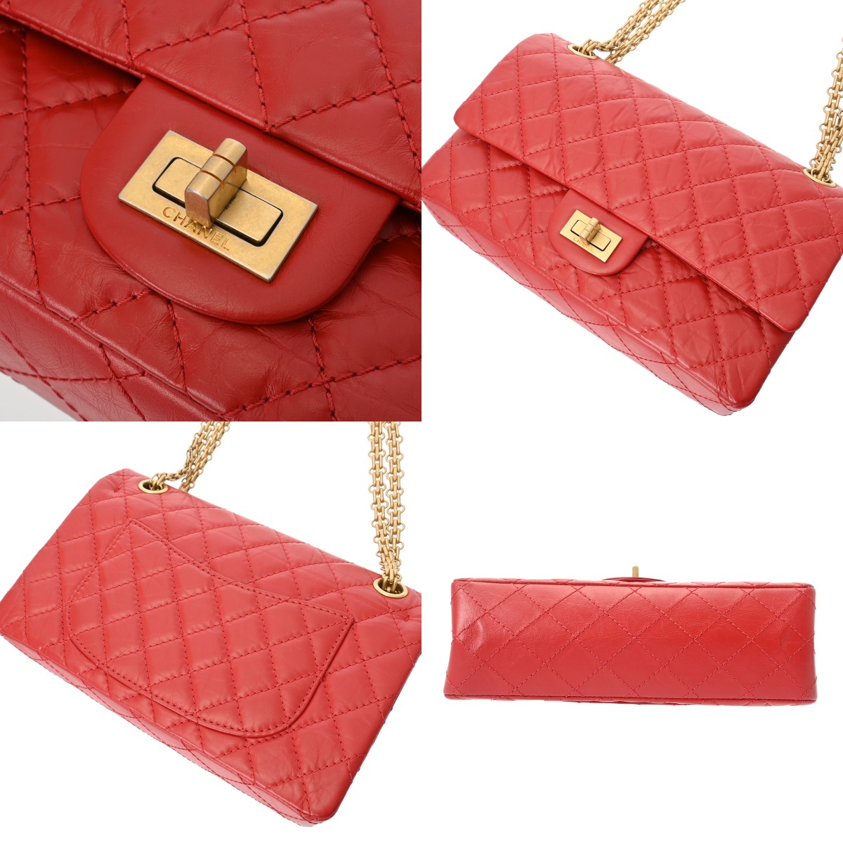 シャネル マトラッセ 2.55 ハンドバッグ レッド A37586 エイジドカーフスキン レディース バッグ 【中古】【bag】