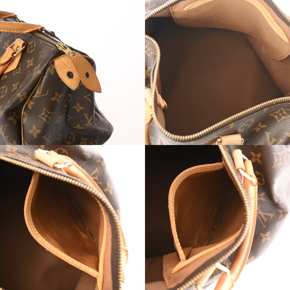 - つぶれ、テカリ、シワ、薄汚れ、ヌメ革ヤケ、スレ、シミ、金具にメッキハガレなど使用感がございます。※ファスナー開閉に緩みあり