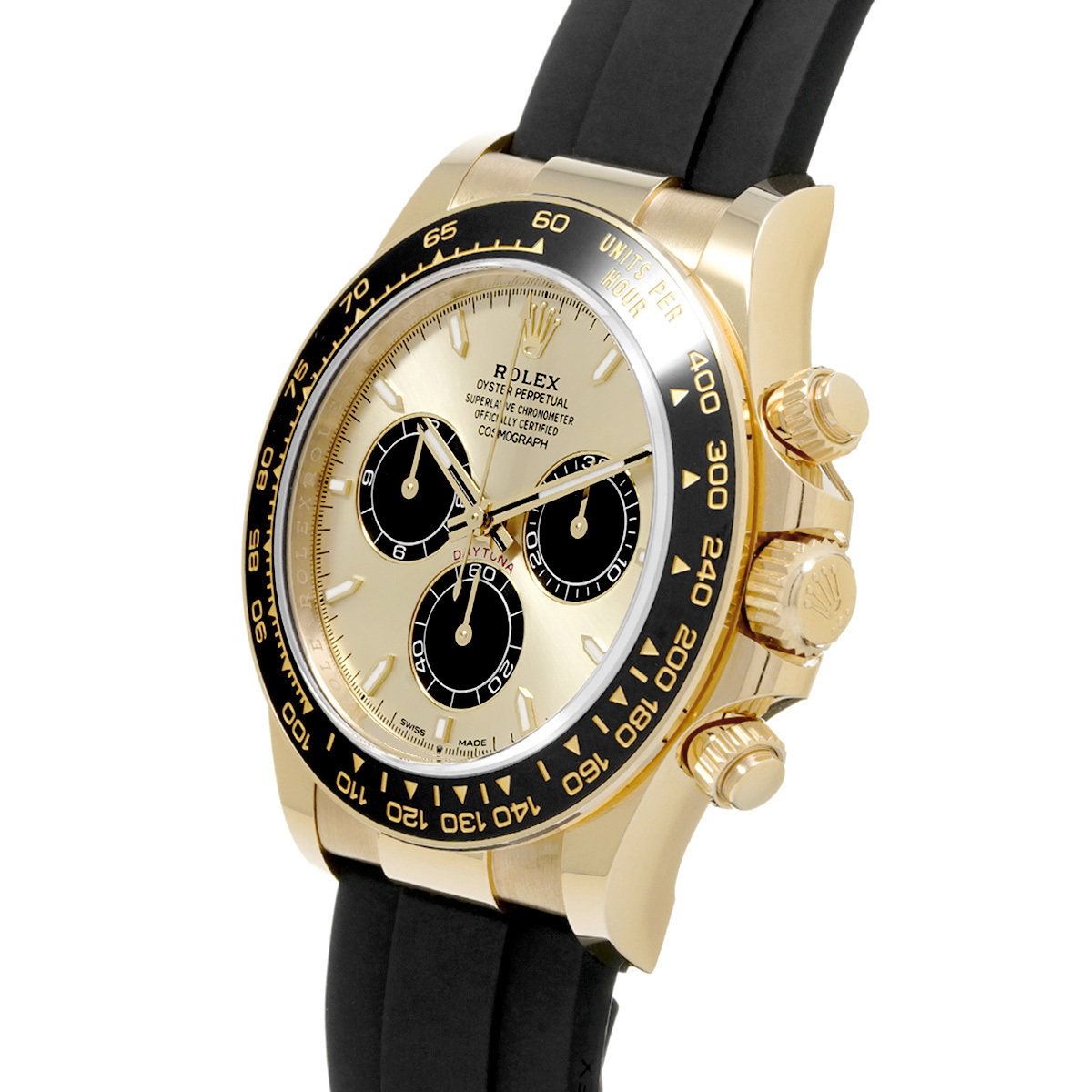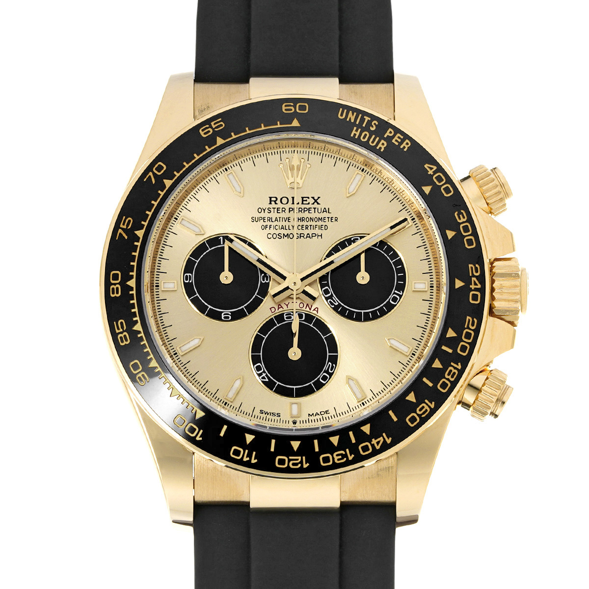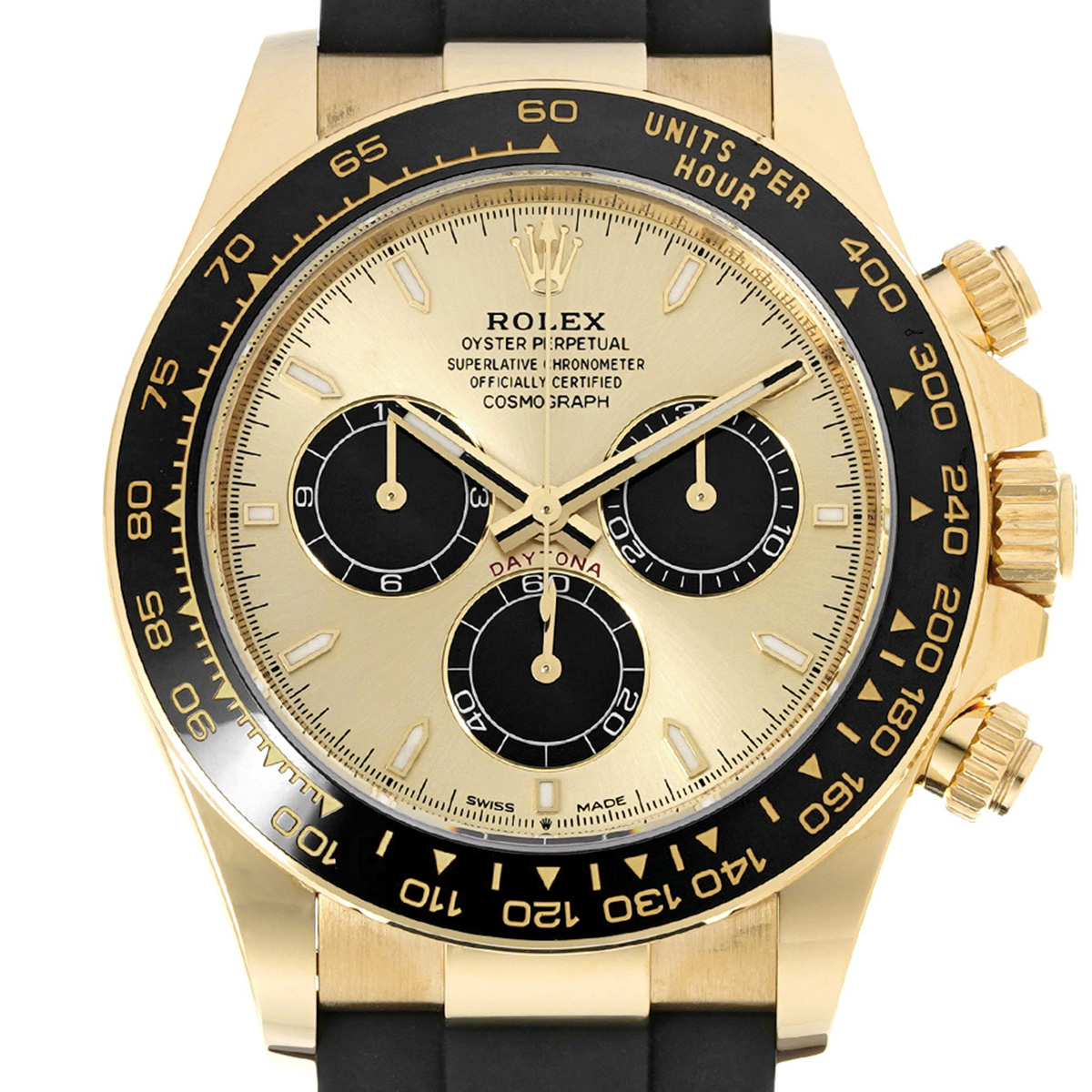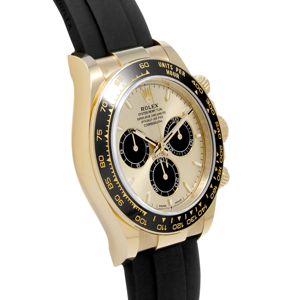 コメントコスモグラフ デイトナの、イエローゴールドケースにオイスターフレックスブレスレットやセラクロムベゼルを採用したスポーティーなバリエーションです。