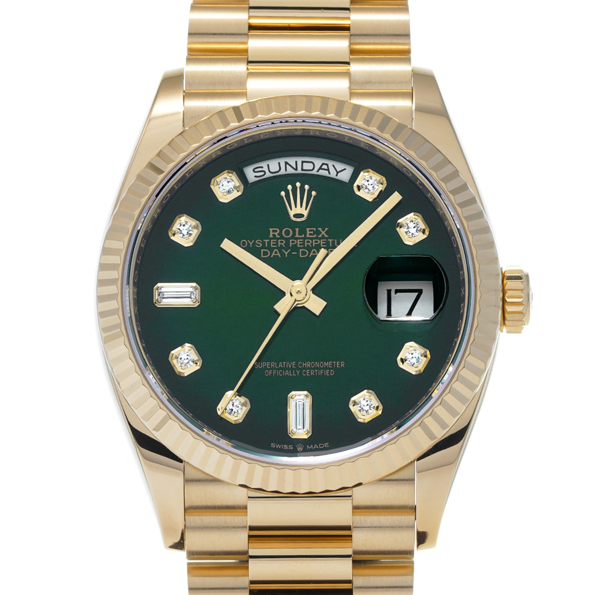 ロレックス デイデイト 36 128238A グリーンオンブレ/ダイヤモンド メンズ 時計 【中古】【wristwatch】