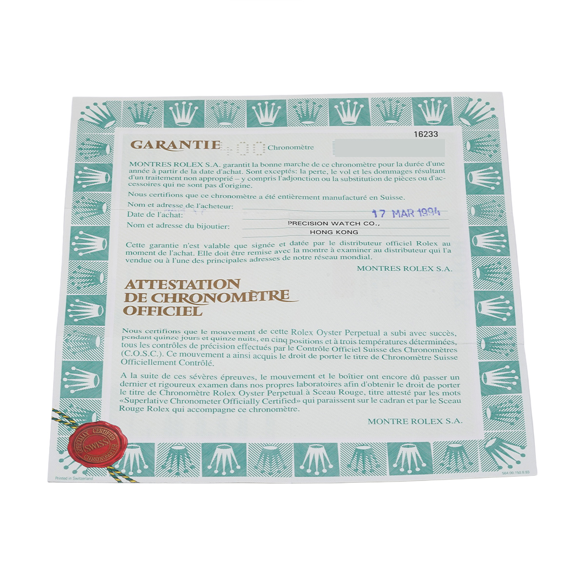 - メーカー保証書( 1994年3月海外購入) / メーカー箱(ダメージ)/冊子