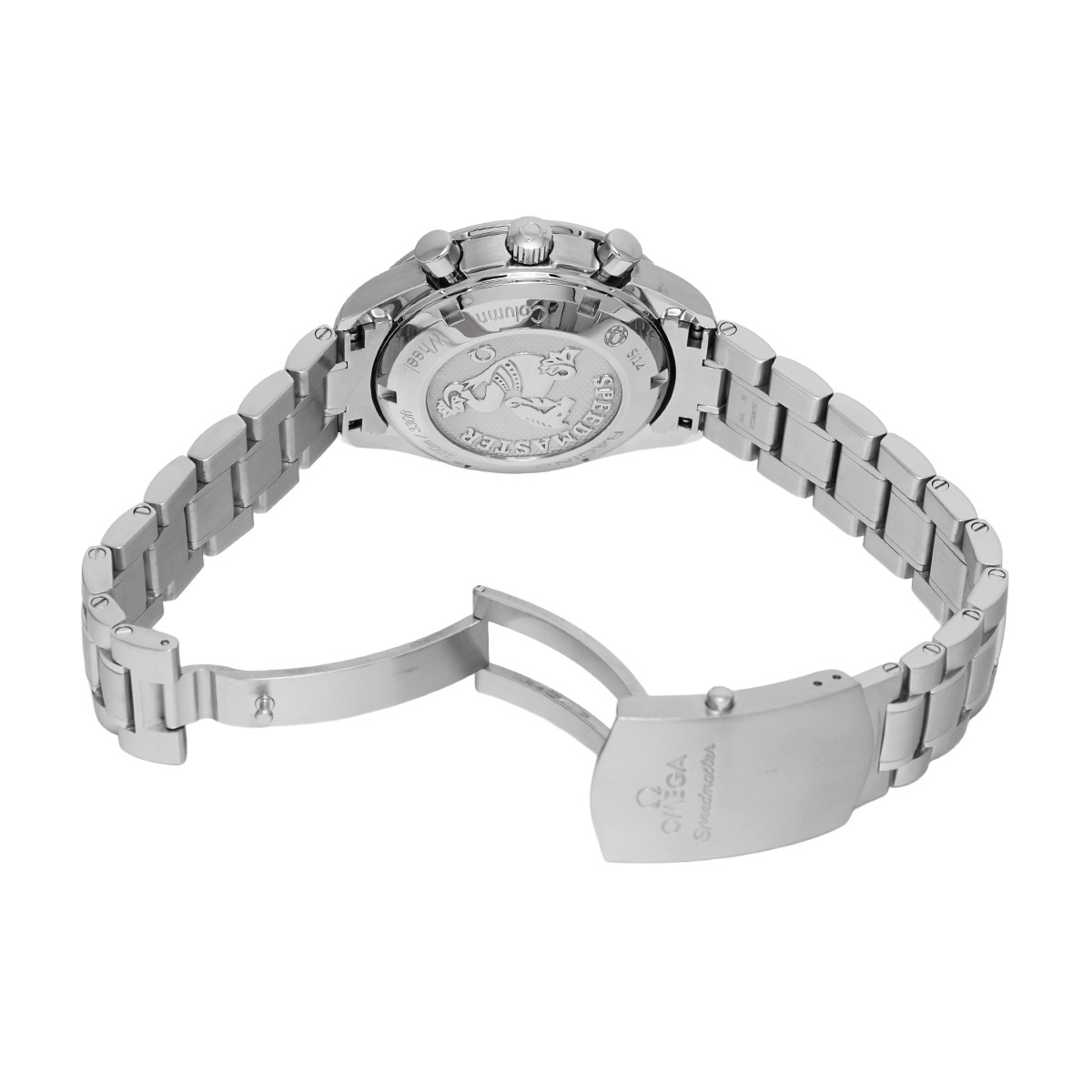 コメントケースを小径化して腕上での収まりの良さを改善すると共に、デイト表示付きの自動巻きムーブメントや100m防水などで、より日常使用に向くモデルとして仕立てた自動巻きのスピードマスターは、歴代モデルのすべてが大変に人気の高いものになっていますが、こちらは2012年にコーアクシャル脱進機とコラムホイール式のクロノグラフ機構を搭載して大幅にグレードアップしたレーシングです。
