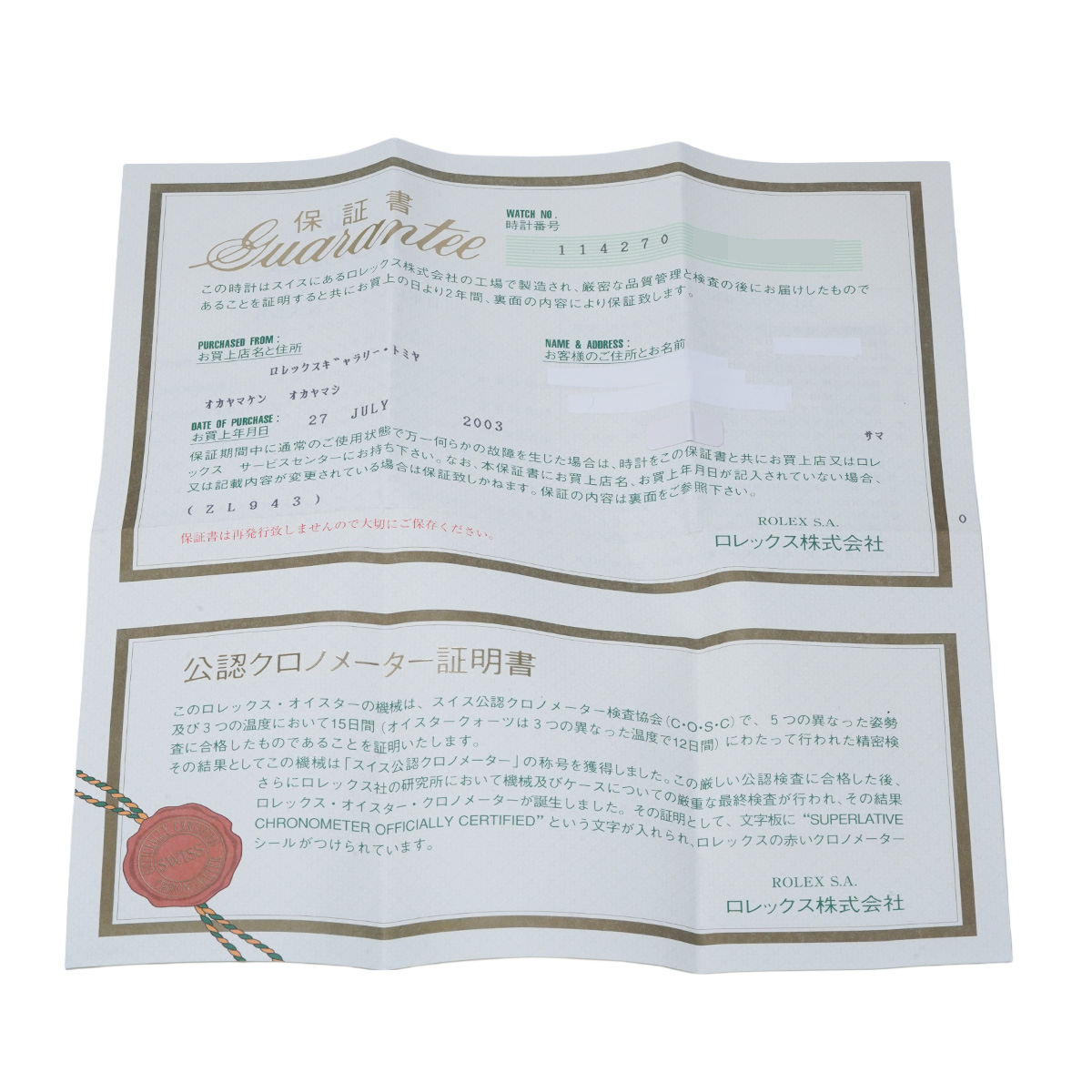- メーカー保証書( 2003年7月国内購入) / メーカー箱(ダメージ)/冊子