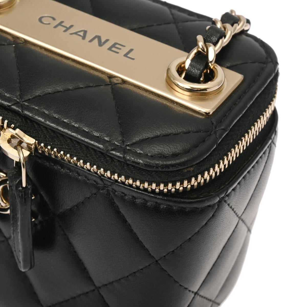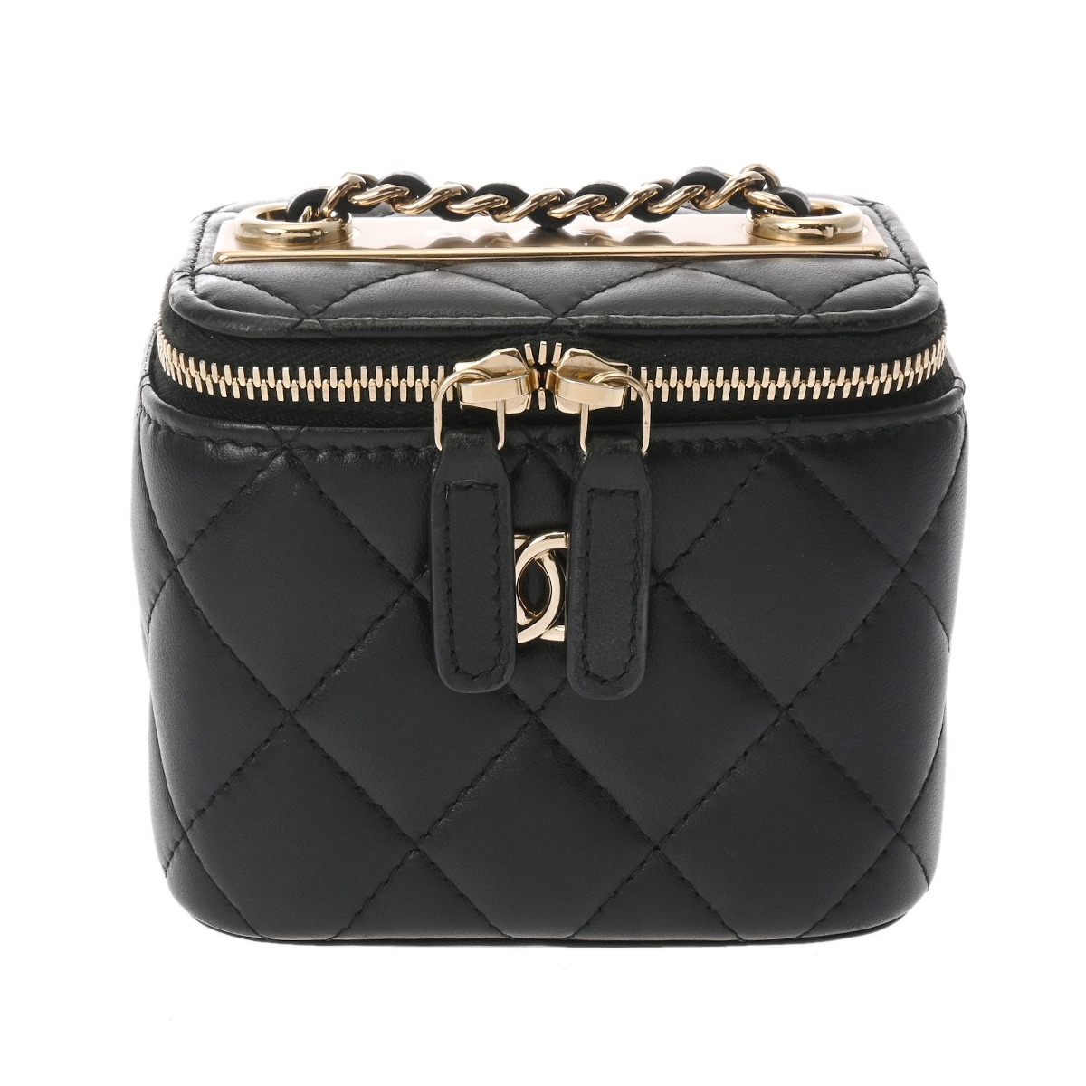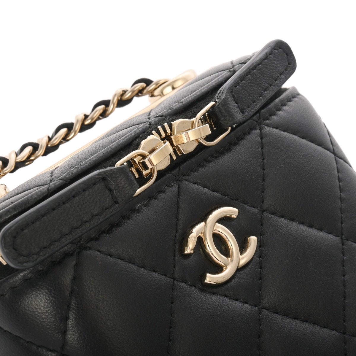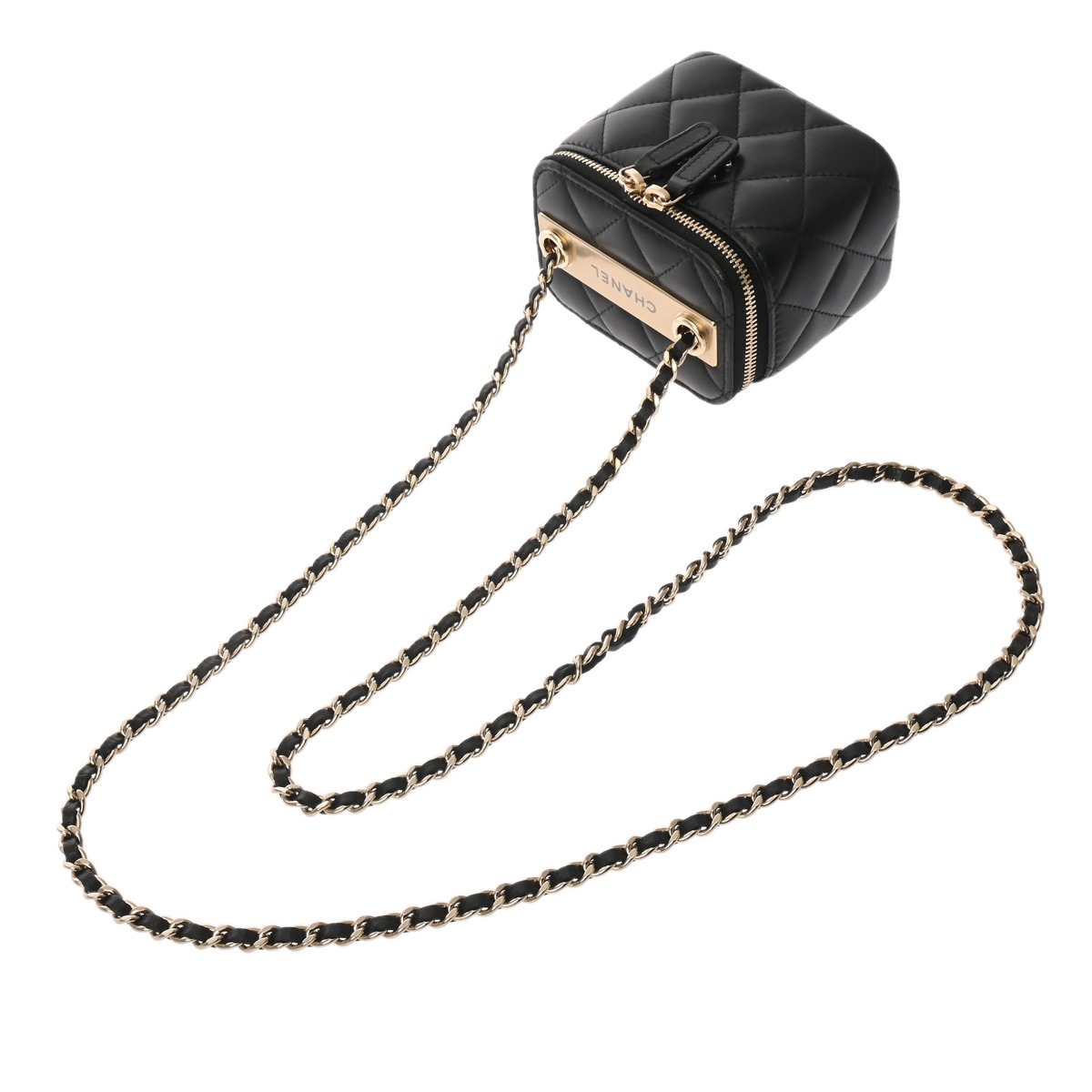 シャネル トレンディCC/マトラッセ ミニヴァニティケース ブラック ラムスキン レディース バッグ 【中古】【bag】