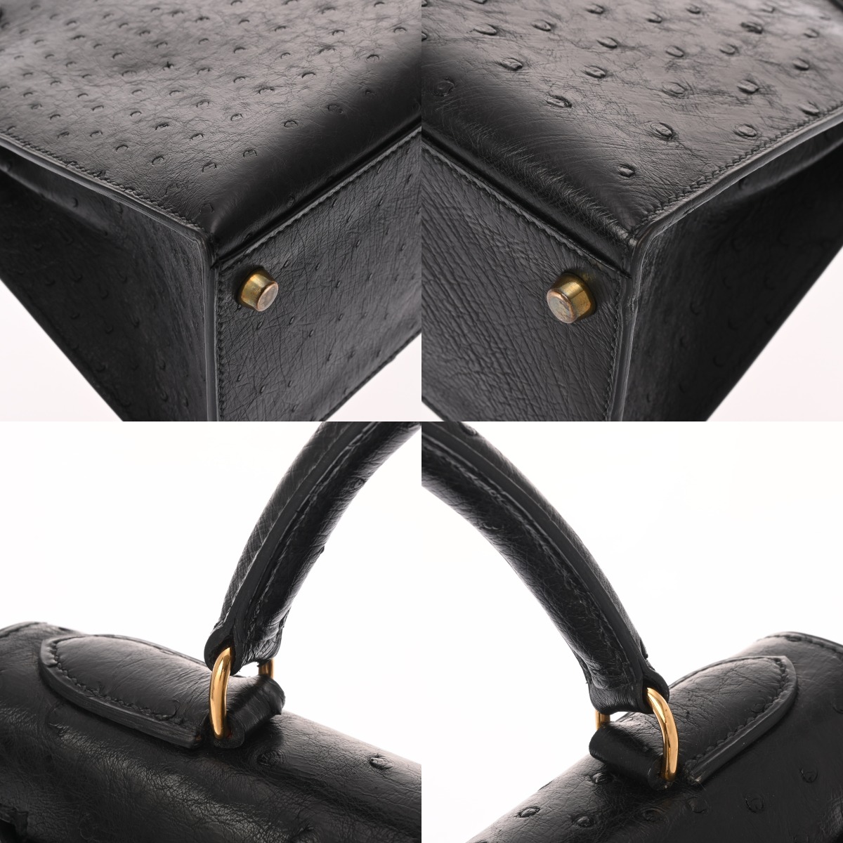 エルメス ケリー 28 外縫い 2WAY ブラック オーストリッチ レディース バッグ 【中古】【bag】